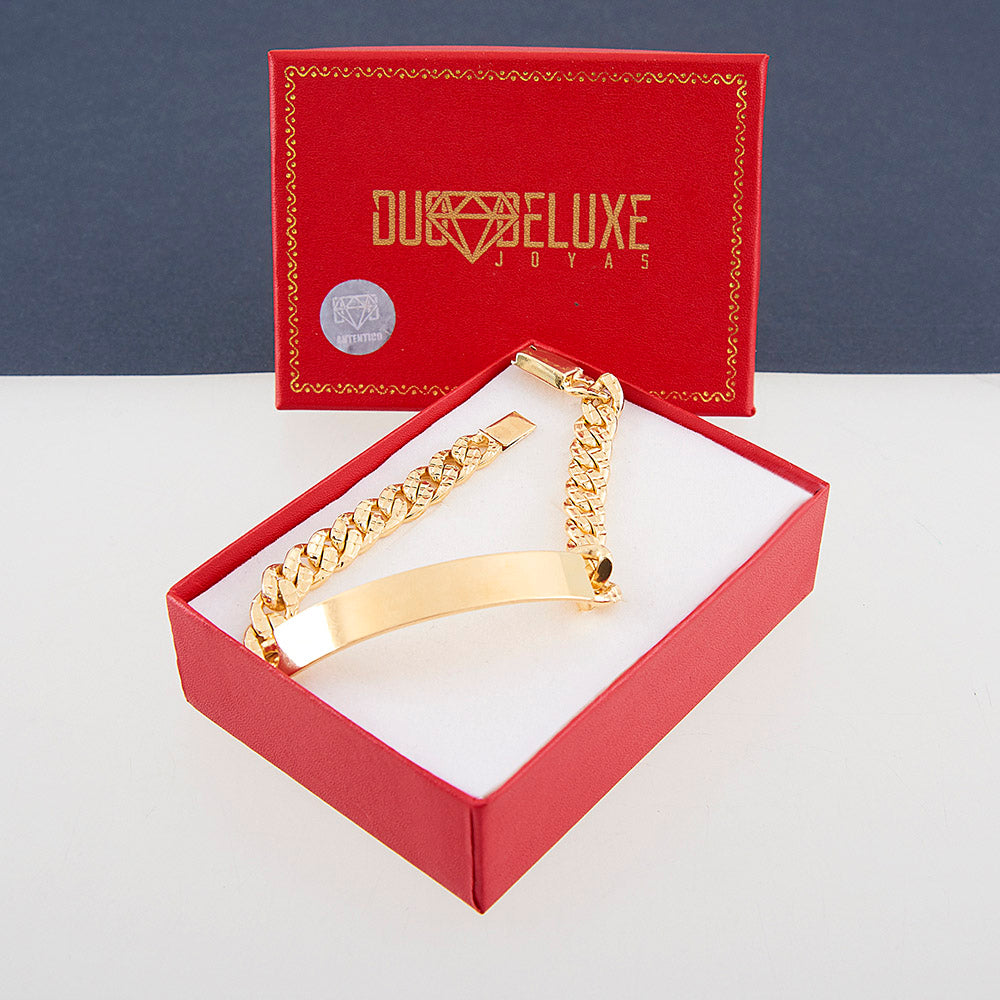 - Esclava tejido Barbada HM Diamantada 2, fabricada en plata autentica ley .925 con baño de oro italiano de 24k, (tiene la misma tonalidad que una joya de oro italiano autentico de 14k), medida de ancho del eslabón: 8 mm, medida de placa: 5 cm x 8 mm, medida de largo: 21 cm, lo ajustamos a cualquier medida de largo, incluye estuche, bolsa de regalo, certificado de autenticidad y póliza de garantía.