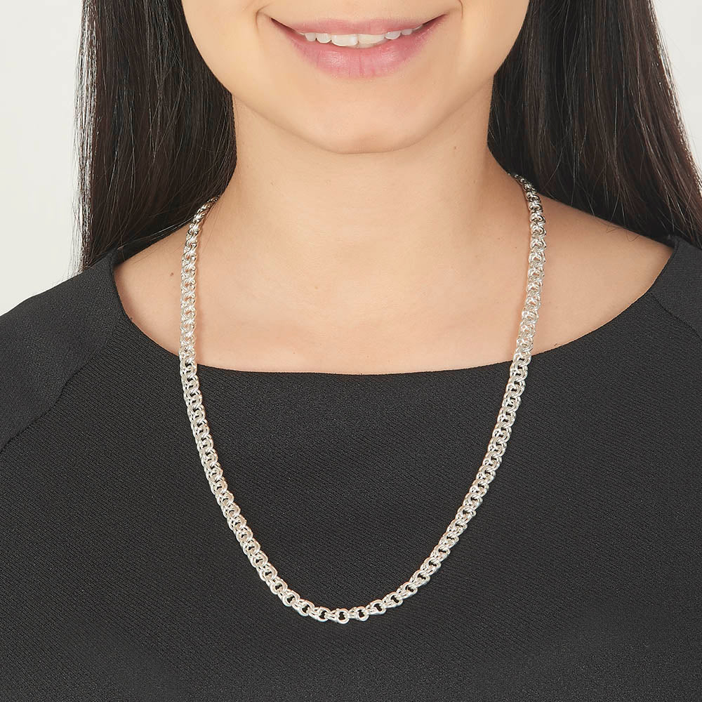 Unisex | Cadena Tejido Chino - 7 mm x 60 cm, Collar Para Hombre Y Mujer, De Plata Autentica Ley .925, DUO DELUXE JOYAS