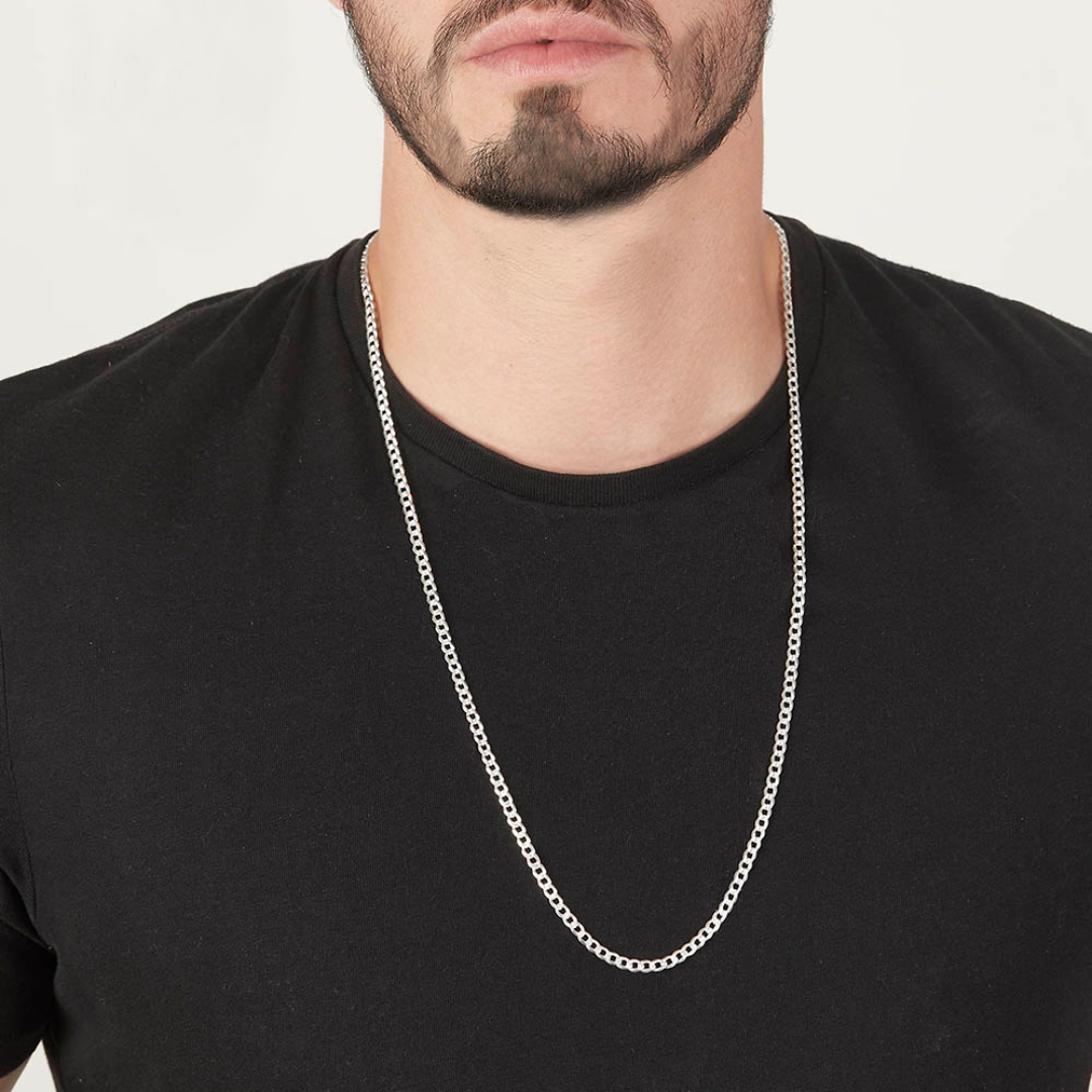 Cadena Barbada Cubana Diamantada - 4 mm - 70 cm - Unisex | Plata Ley.925