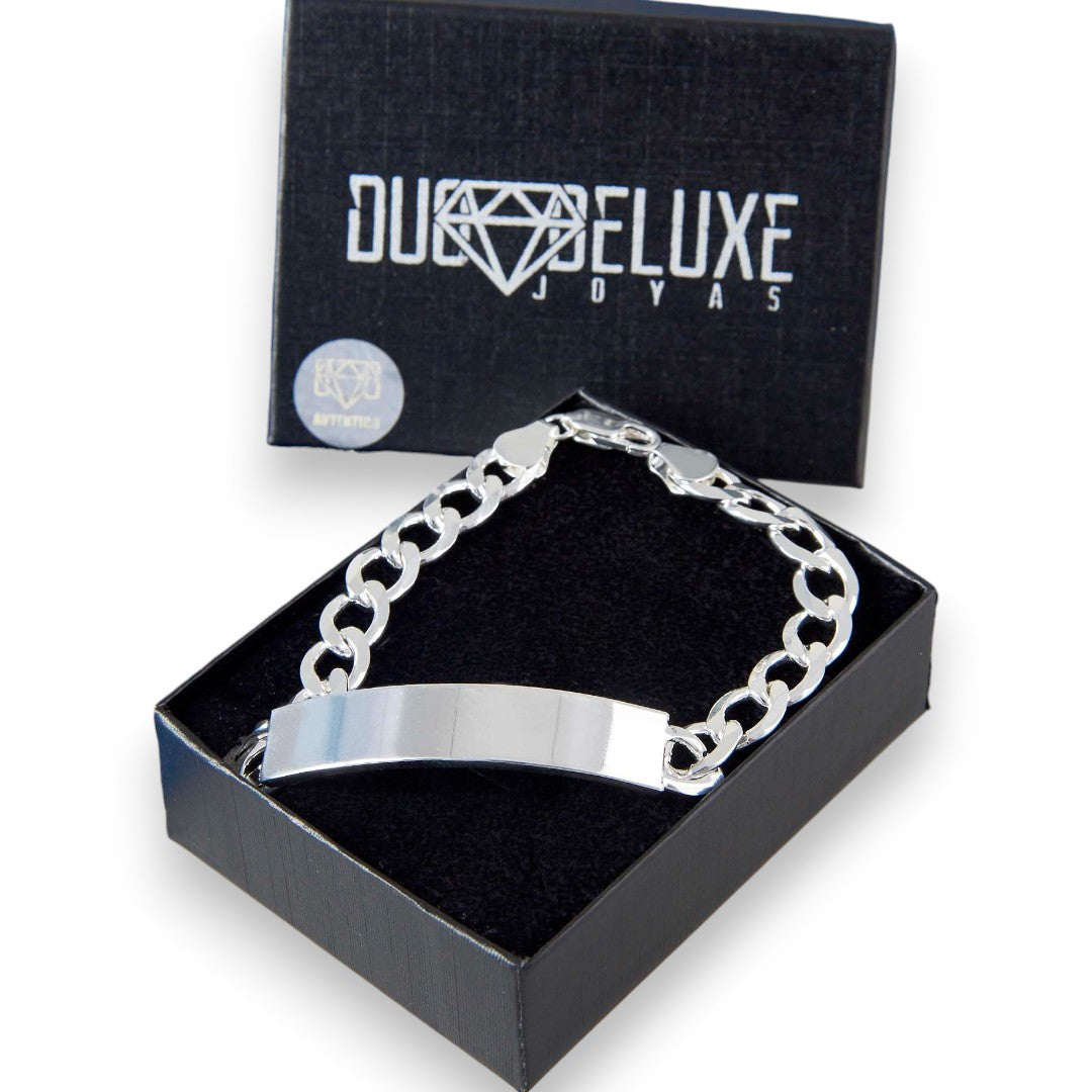 Unisex | Esclava Tejido Barbada Cubana Lisa 8 mm, Pulsera Para Hombre Y Mujer, De Plata Autentica Ley .925, Con Grabado, DUO DELUXE JOYAS