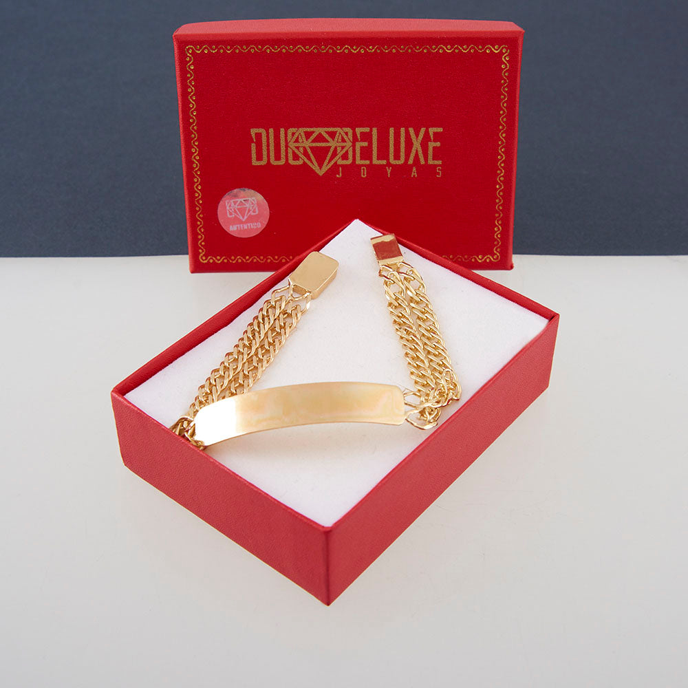 • Esclava tejido Rombo Doble, fabricada en plata autentica ley .925 con baño de oro italiano de 24k, (tiene la misma tonalidad que una joya de oro italiano autentico de 14k), medida de ancho del eslabón: 11 mm, medida de placa: 4.5 cm x 1 cm, medida de largo: 21 cm, lo ajustamos a cualquier medida de largo, incluye estuche, bolsa de regalo, certificado de autenticidad y póliza de garantía.