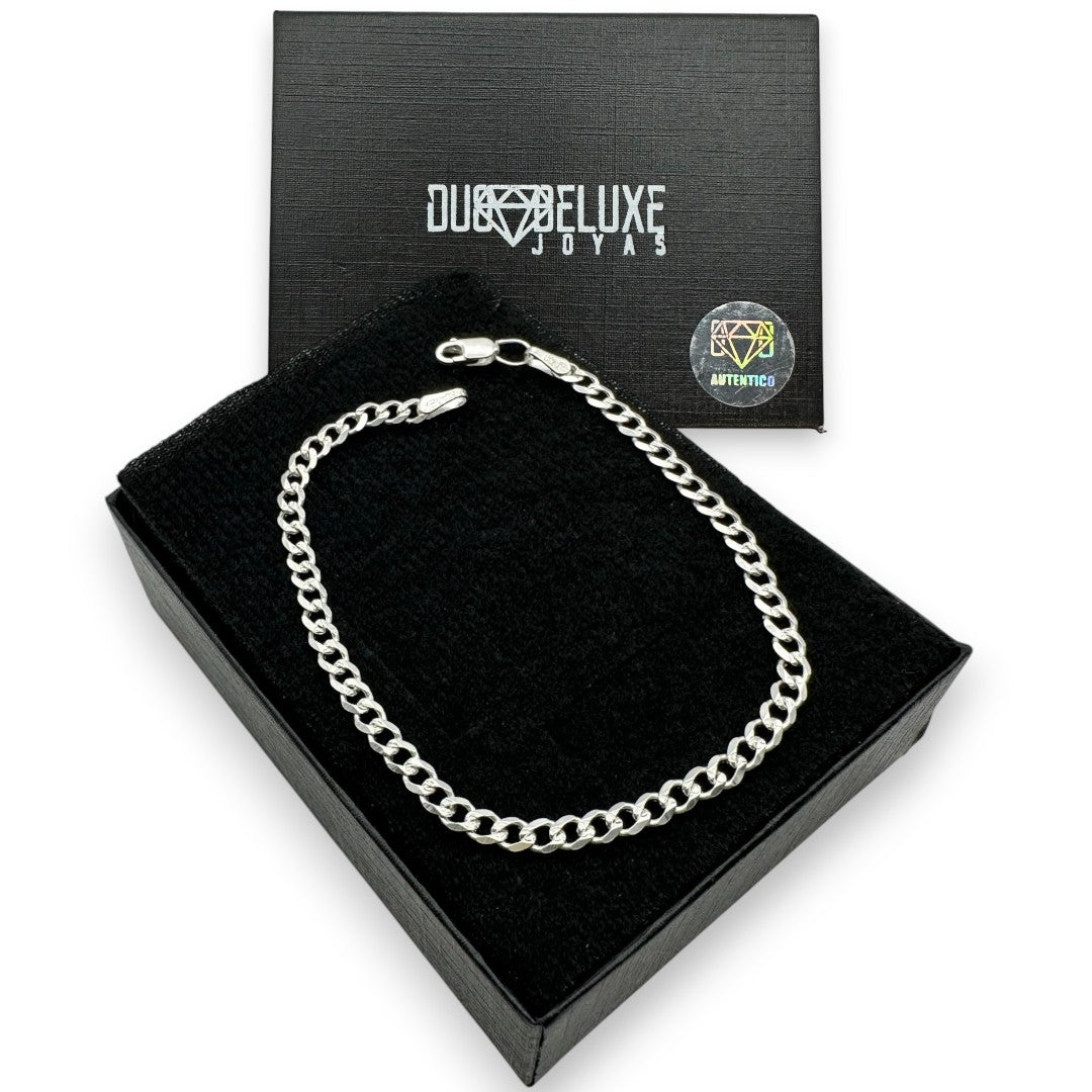 Unisex | Pulso Pulsera Tejido Barbada Cubana Diamantada 3 mm, Esclava Para Hombre Y Mujer De Plata Autentica Ley .925, DUO DELUXE JOYAS