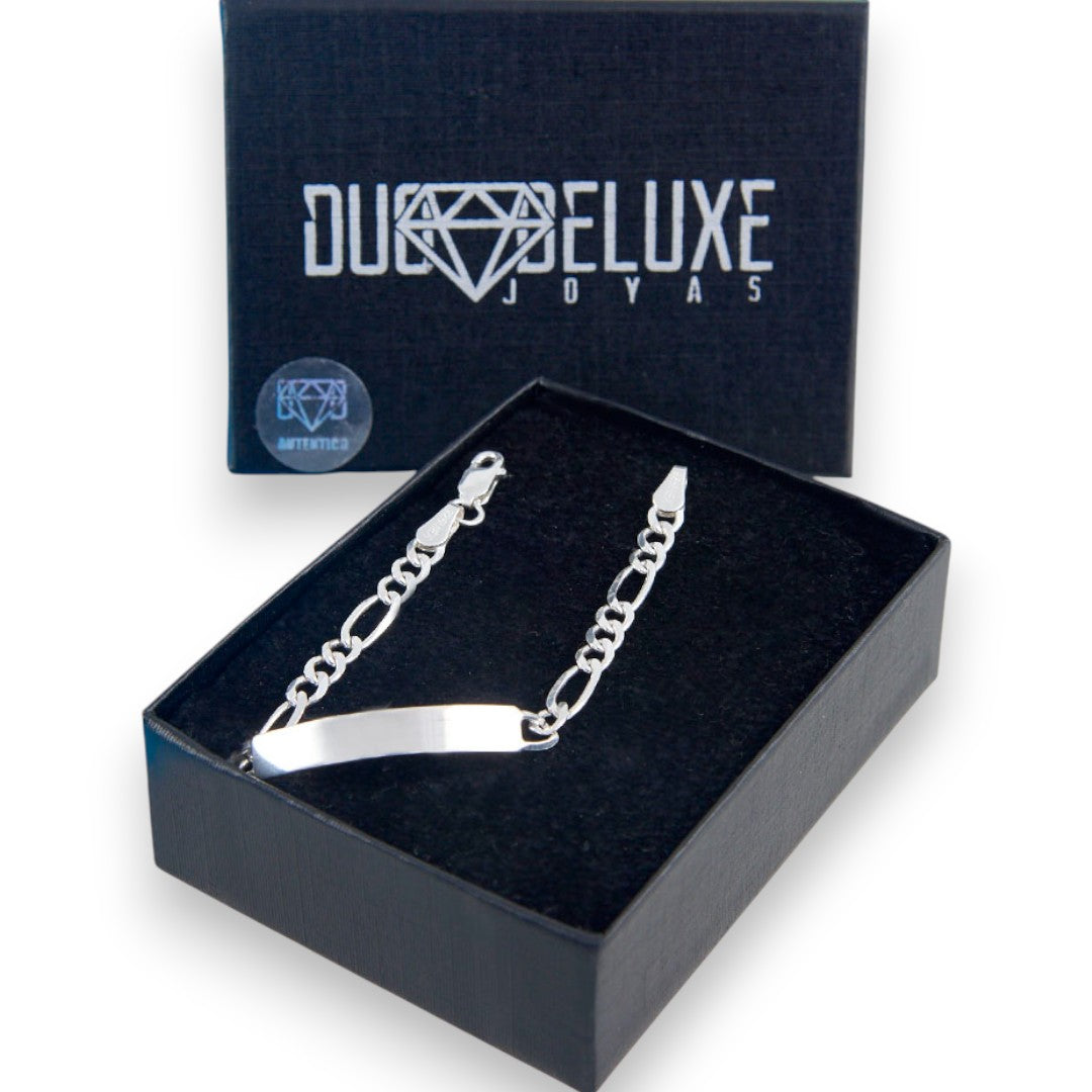 Niño | Pulsera Esclava Tejido Cartier Figaro 3:1 Lisa 4 mm, Para Niño, De Plata Autentica Ley .925, Con Grabado, DUO DELUXE JOYAS