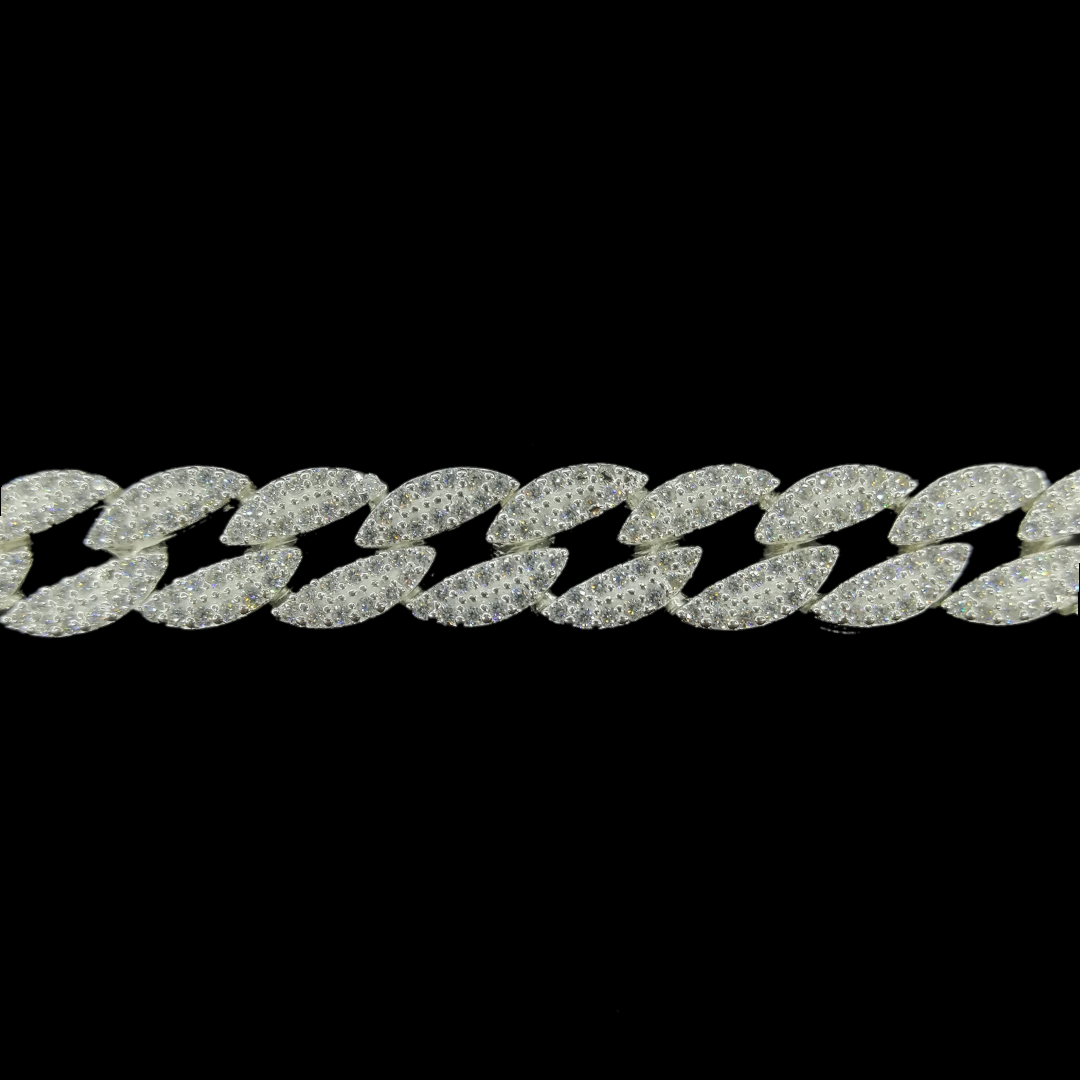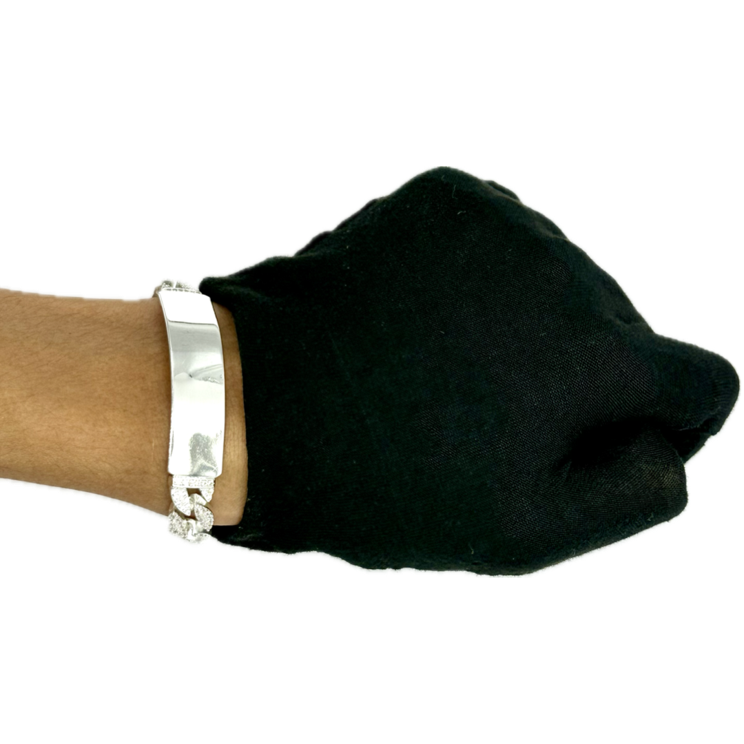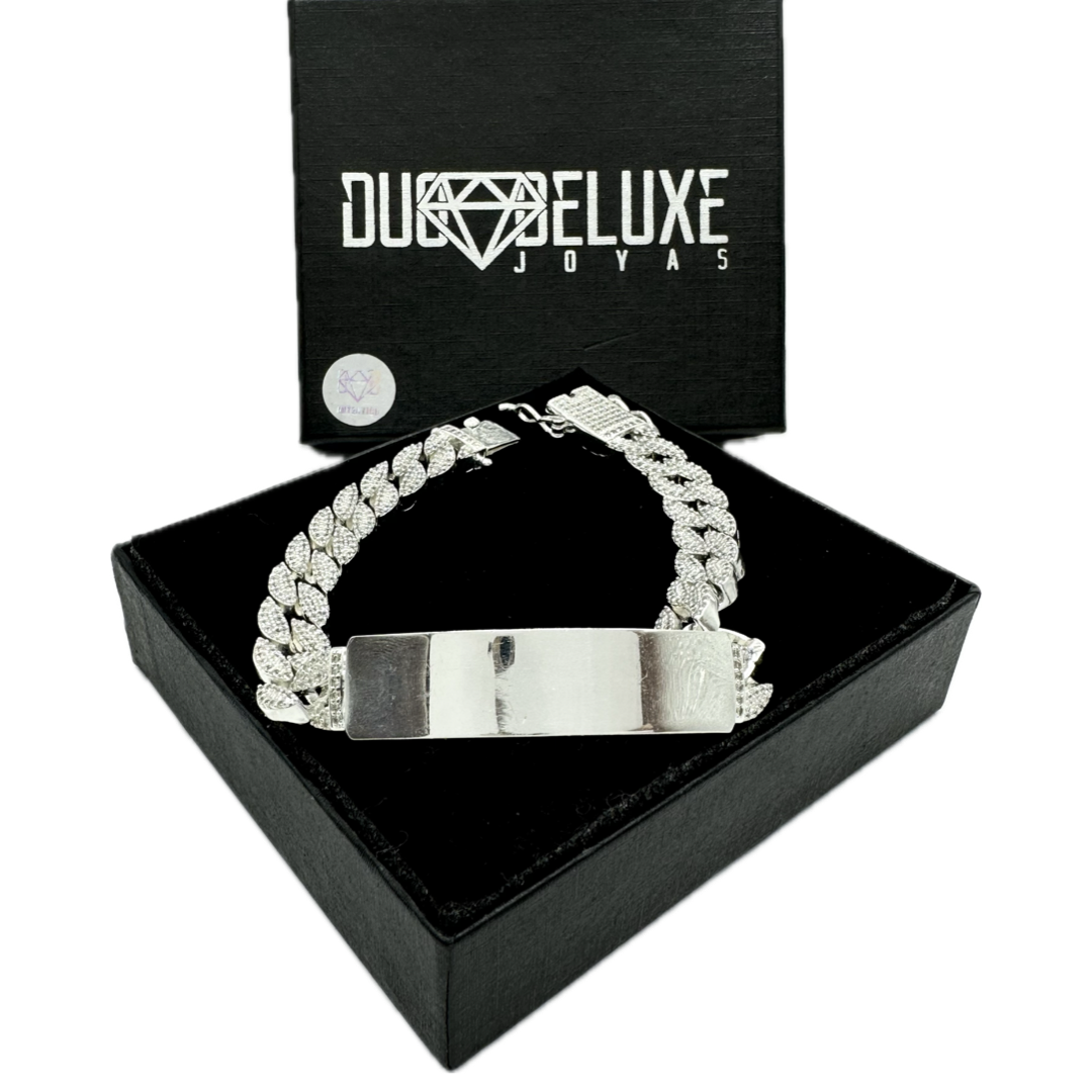 - Esclava tejido Barbada Cubana Diamantada Con Zirconias 1, fabricada en plata auténtica ley .925, medida de ancho del eslabón: 10 mm, medida de placa: 5 cm x 11 mm, medida de largo: 21 cm, lo ajustamos a cualquier medida de largo, incluye estuche, bolsa de regalo, certificado de autenticidad, póliza de garantía y una franela especial para darle brillo a su joya.