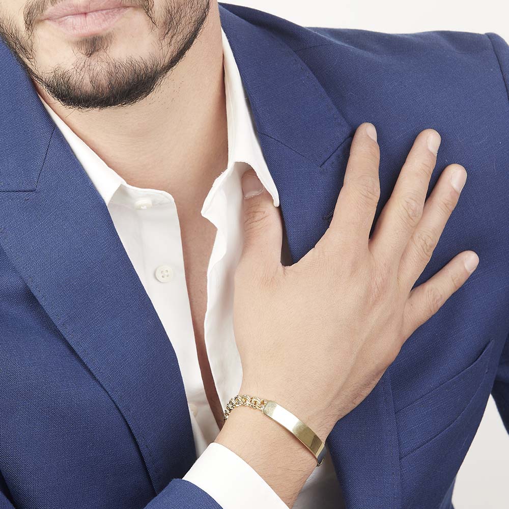 • Esclava tejido China, fabricada en plata autentica ley .925 con baño de oro italiano de 24k, (tiene la misma tonalidad que una joya de oro italiano autentico de 14k), medida de ancho del eslabón: 6 mm, medida de placa: 5 cm x 9 mm, medida de largo: 21 cm, lo ajustamos a cualquier medida de largo, incluye estuche, bolsa de regalo, certificado de autenticidad y póliza de garantía.