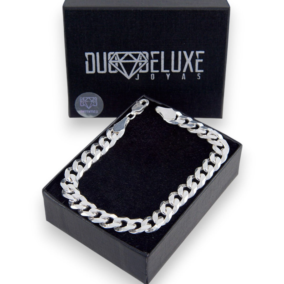 Unisex | Pulso Pulsera Tejido Barbada Cubana Lisa 8 mm, Esclava Para Hombre Y Mujer De Plata Autentica Ley .925, DUO DELUXE JOYAS