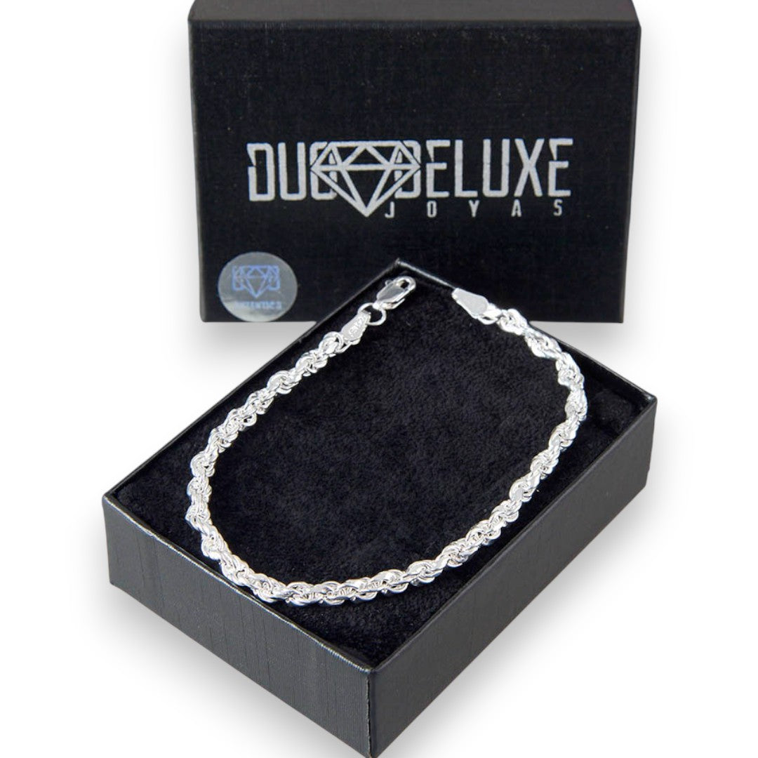 Unisex | Pulso Pulsera Tejido Torzal Relleno 4 mm, Esclava Para Hombre Y Mujer De Plata Autentica Ley .925, DUO DELUXE JOYAS